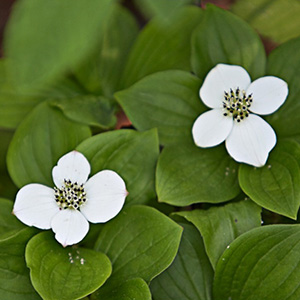 J’intègre un couvre sol vraiment charmant, le Cornouiller du Canada au feuillage large, qui fleurit au mois d’août. Contrairement aux idées reçues, un jardin trop exposé au soleil n’est pas plus avantageux pour les fleurs et arbustes floraux. Surtout sous notre climat de moyenne montagne oû les amplitudes thermiques du mois d’août sont franches. En août, en effet, il peut faire 35 degrés le jour et 8 degrés la nuit. Un jardin composé avec différentes strates de végétaux, d’équilibre d’ombres et d’ensoleillements, de diversités végétales, permet d’encaisser les différences thermiques et hydrologiques. Les vivaces et arbustes à fleurs exposées à la mi-ombre auront effectivement un développement plus lent, mais assureront une floraison plus douce et plus tardive.